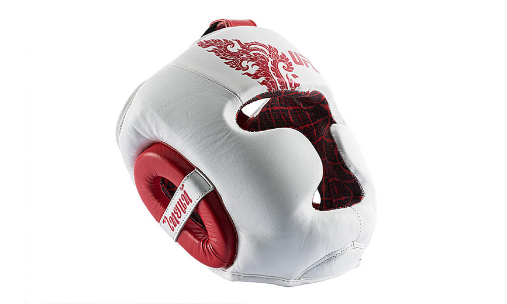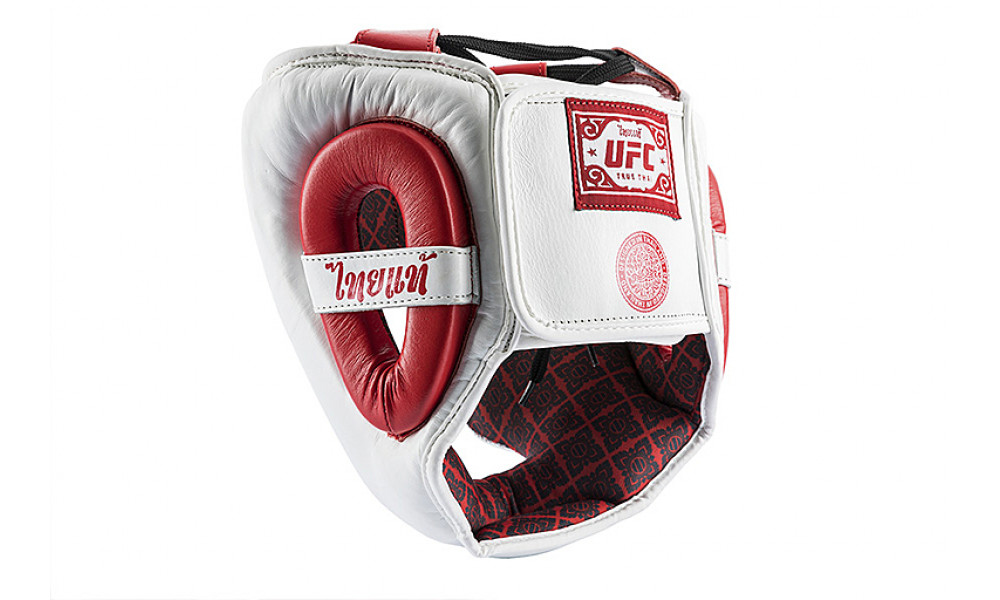 Шлем для бокса UFC Premium True Thai изготовлен из долговечной натуральной кожи. Внутренняя часть шлема имеет нескользящую мягкую подкладку. Для защиты щек и подбородка применяется многослойная Eva-пена. Для надежной фиксации предусмотрена застежка на липучке.